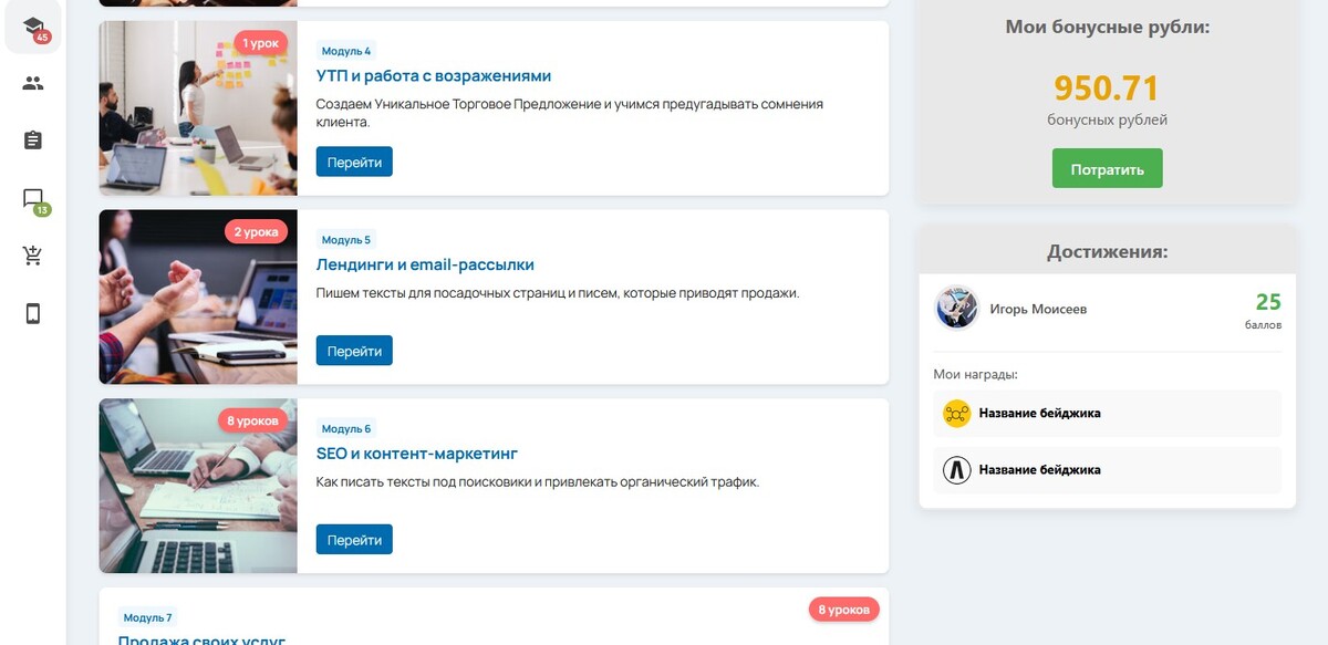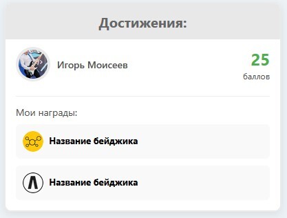 Блок с достижениями пользователя в Getcourse