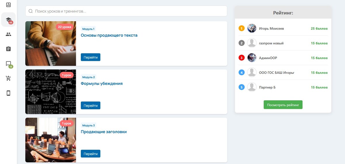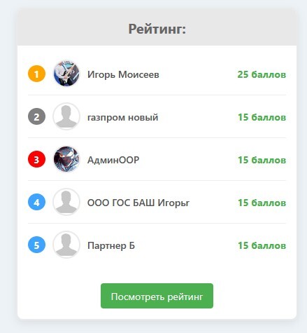 Блок показывает рейтинг ТОП5 по шкале достижений Getcourse.
