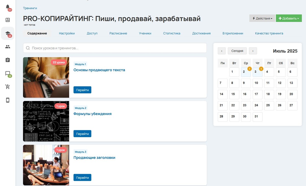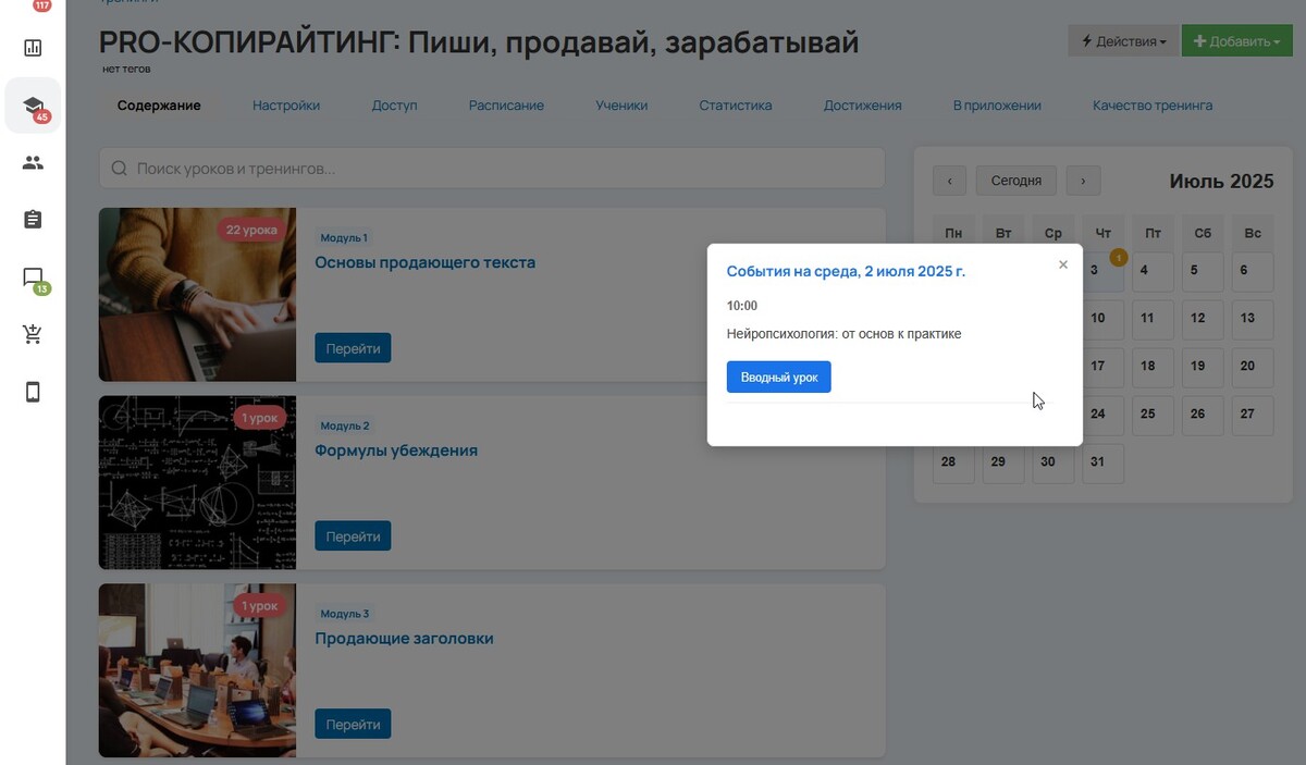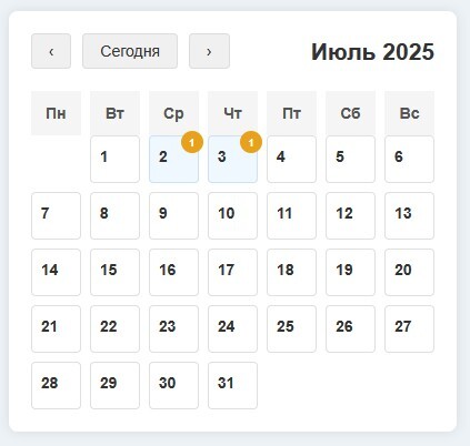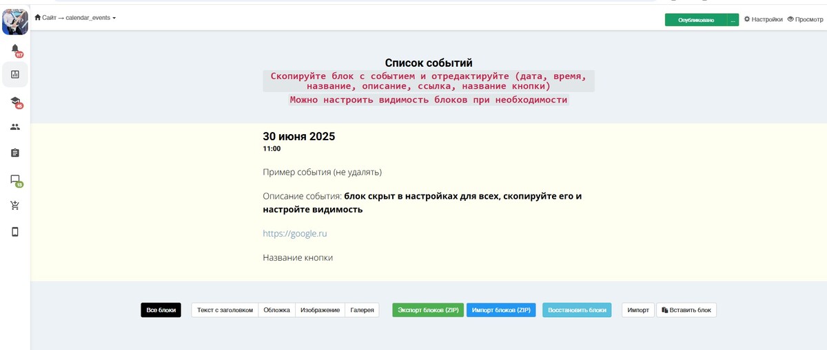 - Показывает ваши события и события из Актуального расписания Getcourse