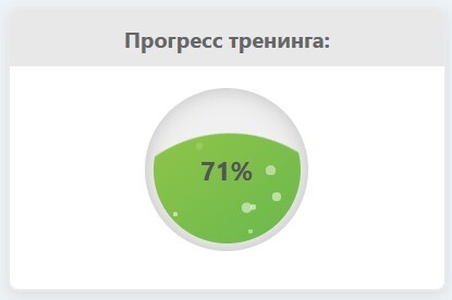 Блок показывает прогресс выполнения тренинга или подтренинга в виде сферы (анимация жидкости и пузырьков).