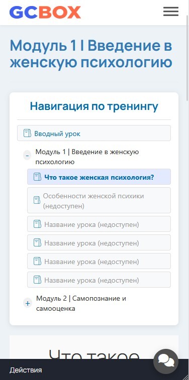 ✅ Текущий урок или модуль выделяется в навигации автоматически