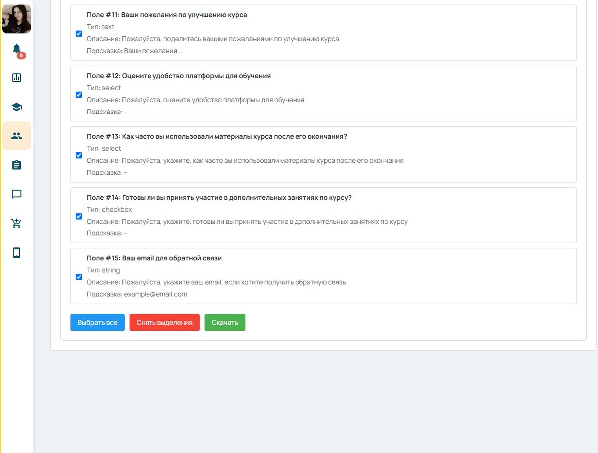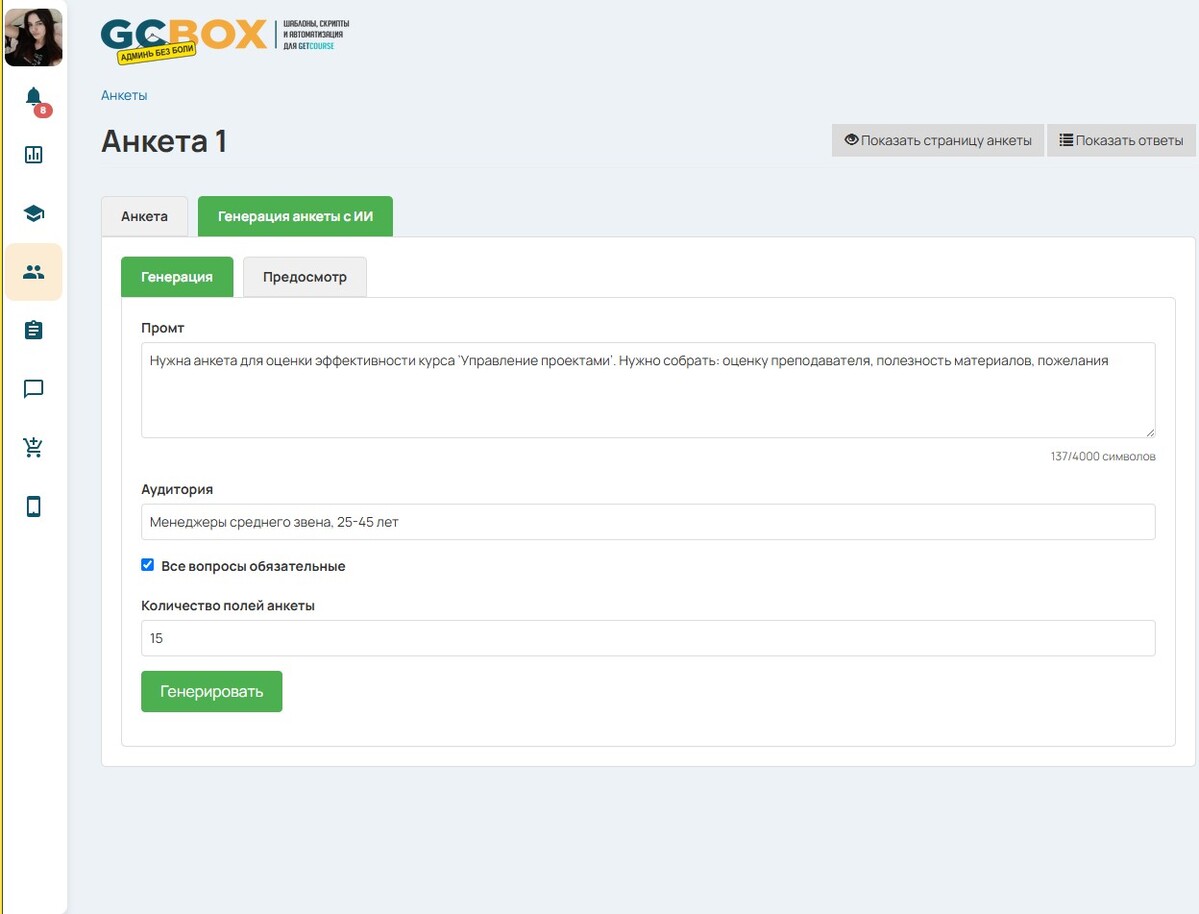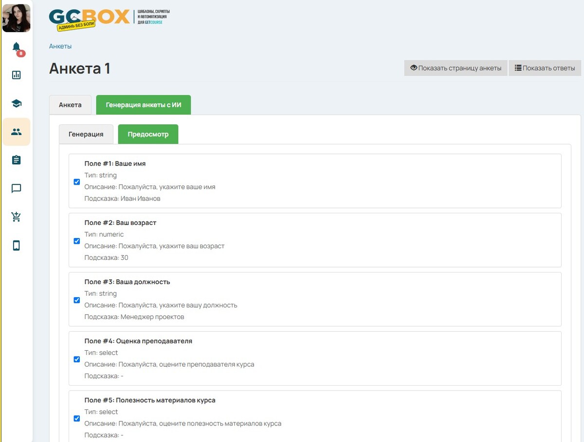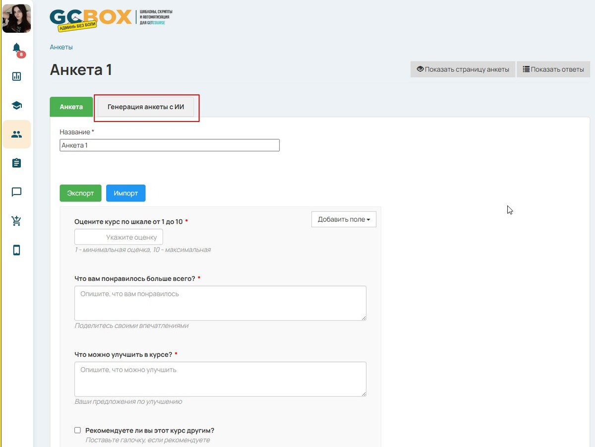 🔹 Поддержка импорта — готовые анкеты для загрузки в Getcourse