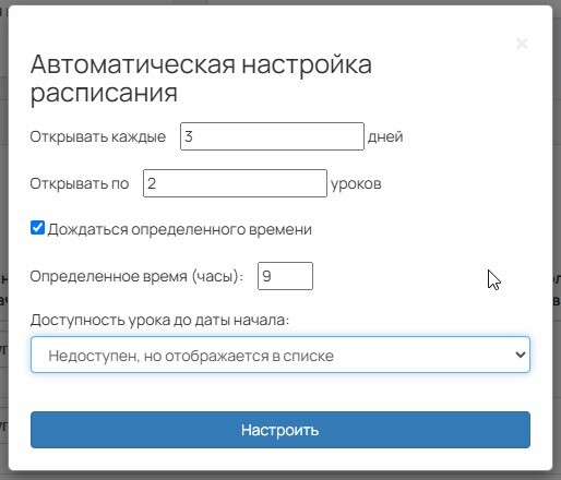 🔹 Автоматическая настройка — система сама распределит открытие уроков по вашим правилам