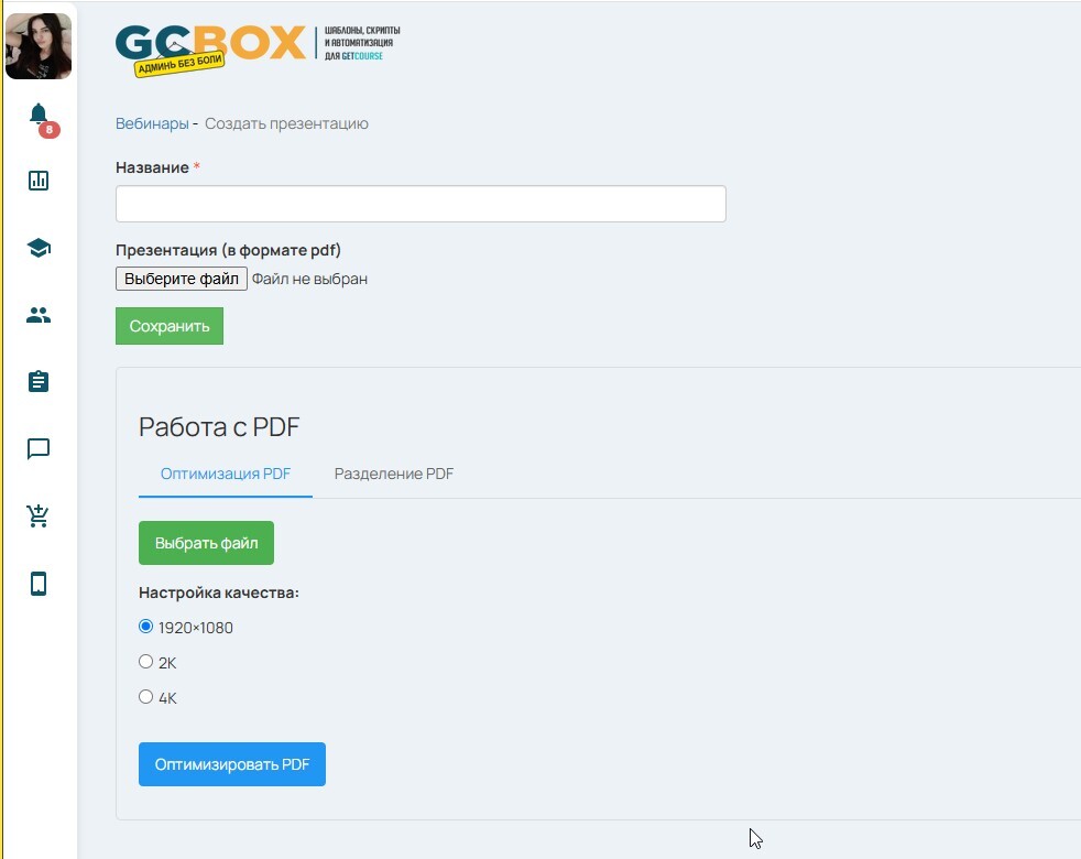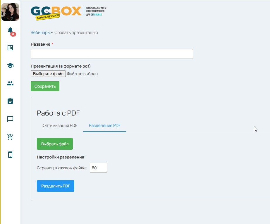 Конвертер и разделение PDF для презентаций вебинара Getcourse