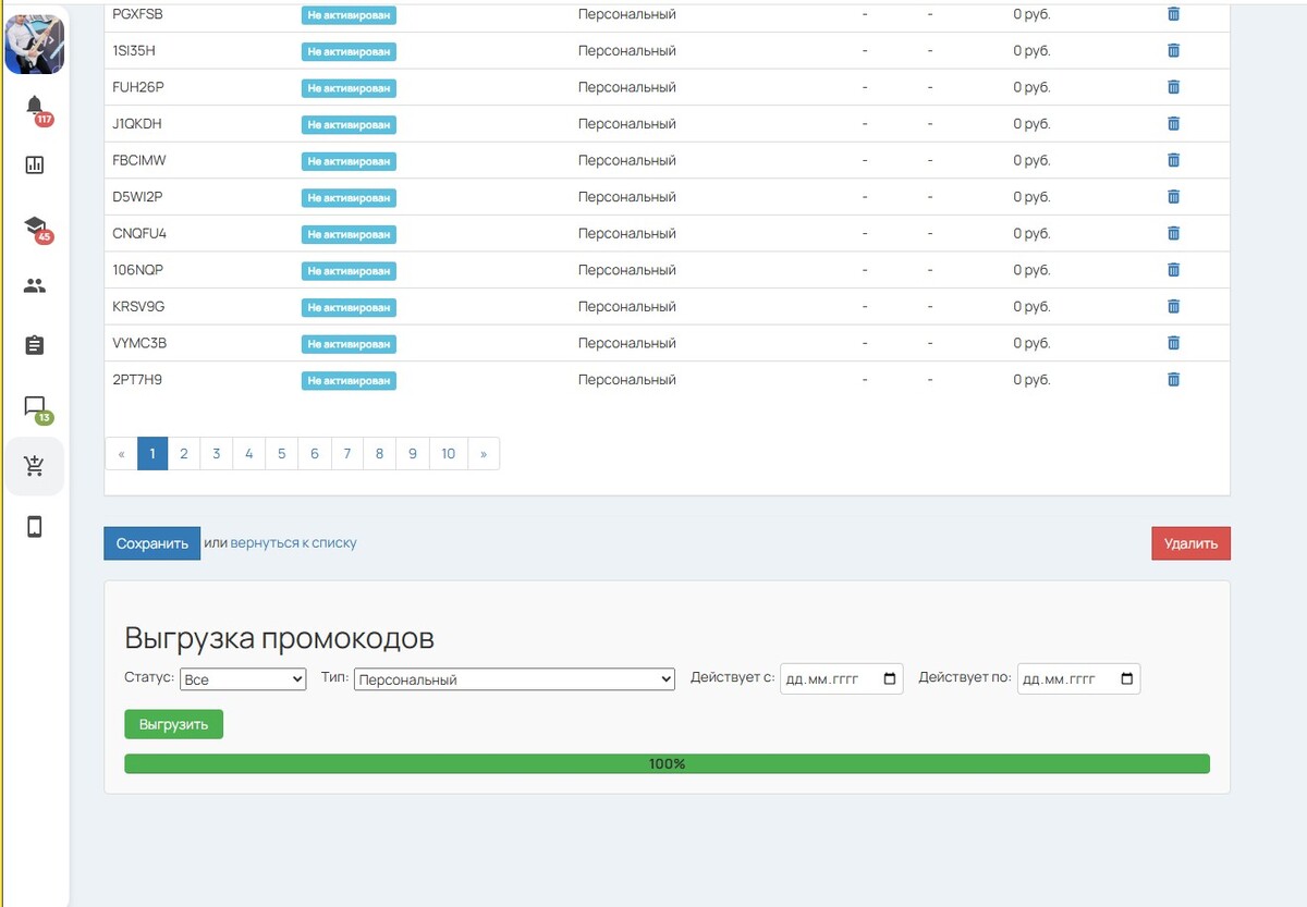 Этот инструмент значительно упрощает работу с промокодами Getcourse, позволяя выгружать их по гибким фильтрам для анализа и отчетности.