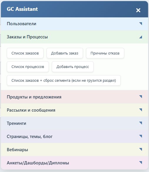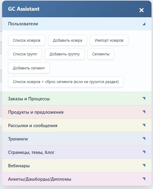Это удобный инструмент для быстрой навигации в вашем аккаунте Getcourse.