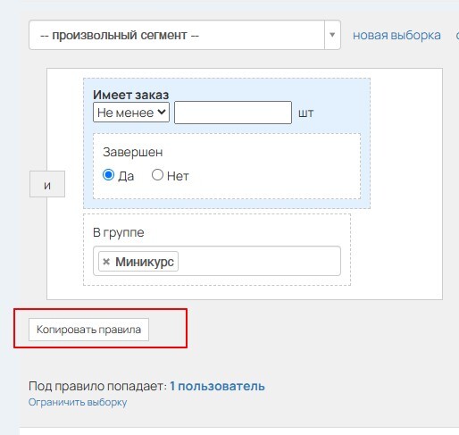 Копирование и вставка правил сегмента Getcourse в 2 клика