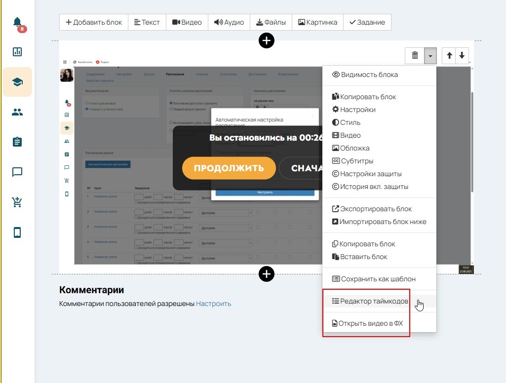 Этот инструмент позволяет легко создавать интерактивные оглавления для видео в уроках, улучшая навигацию и удобство обучения в Getcourse.