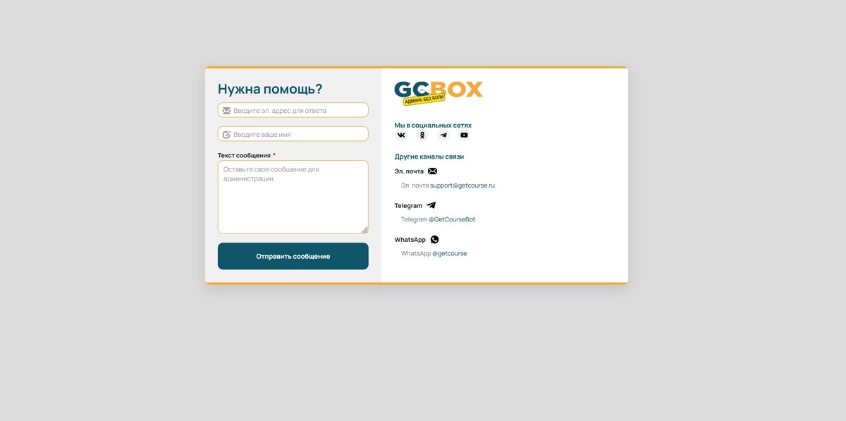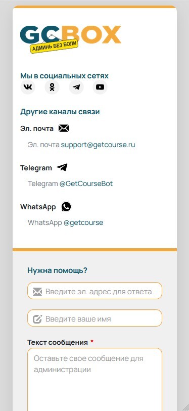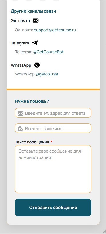 - Оформление страницы обратной связи для аккаунтов Getcourse