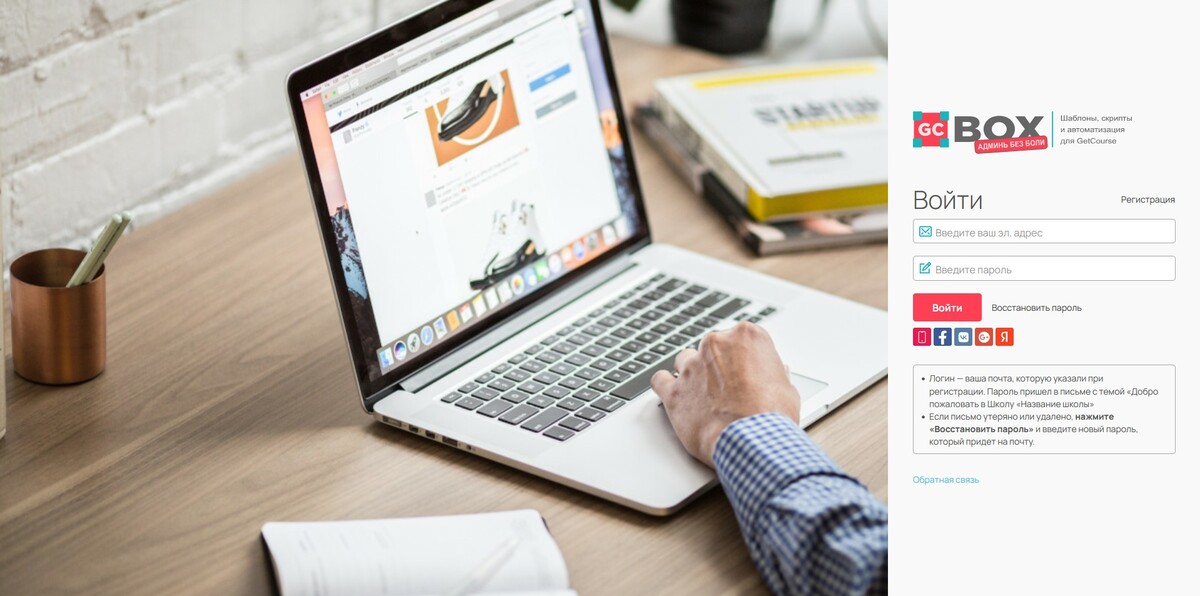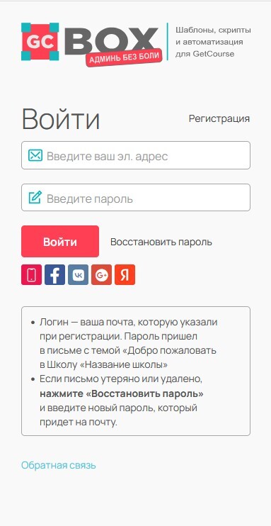 - Оформление страницы входа для аккаунтов Getcourse