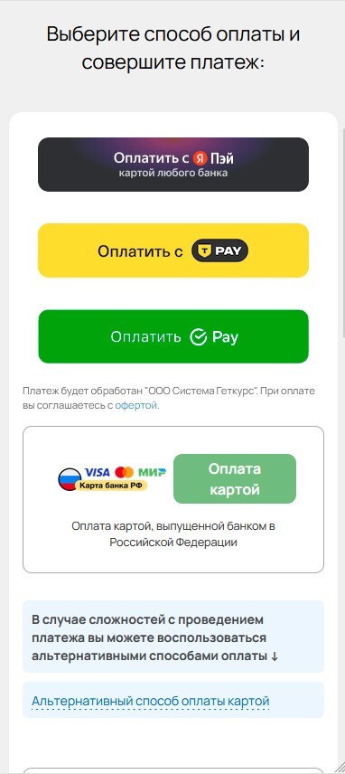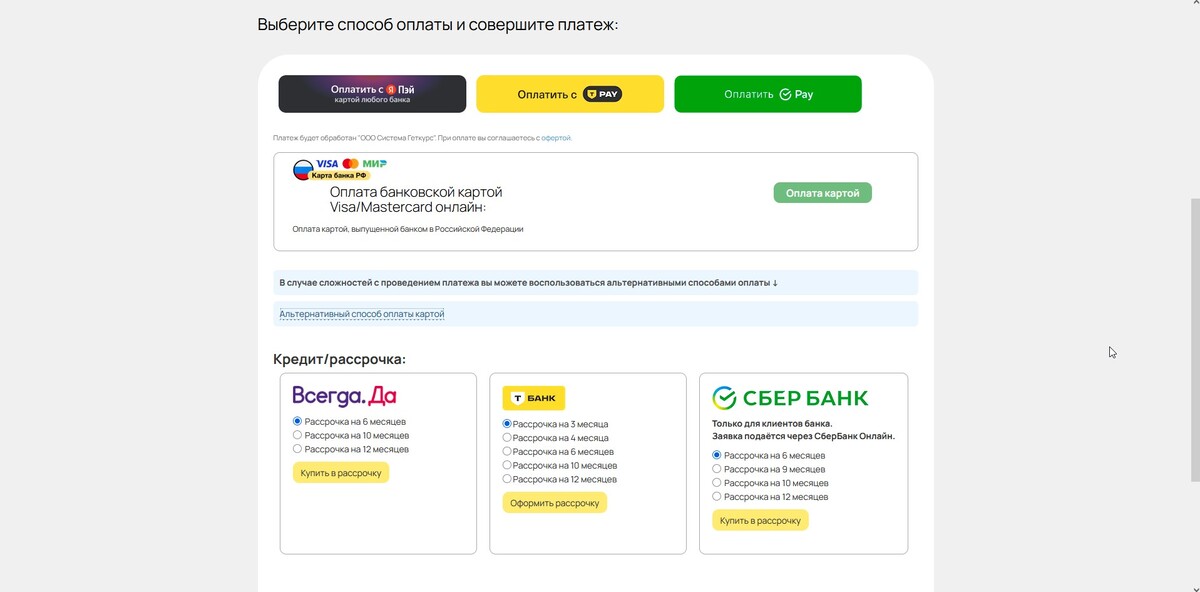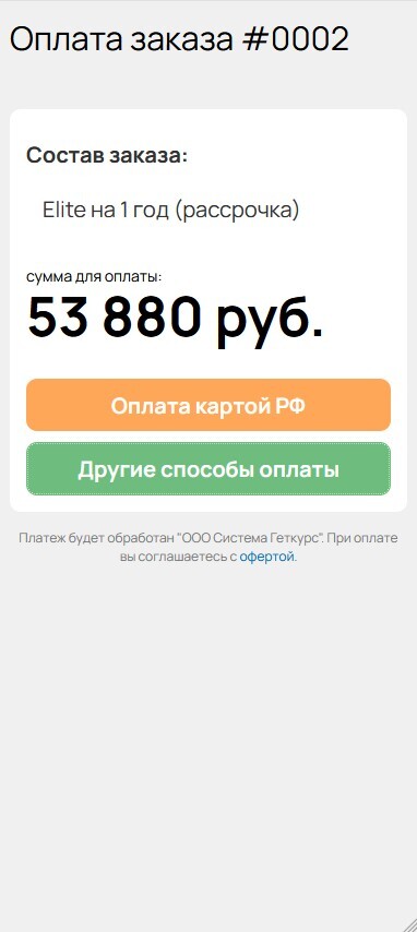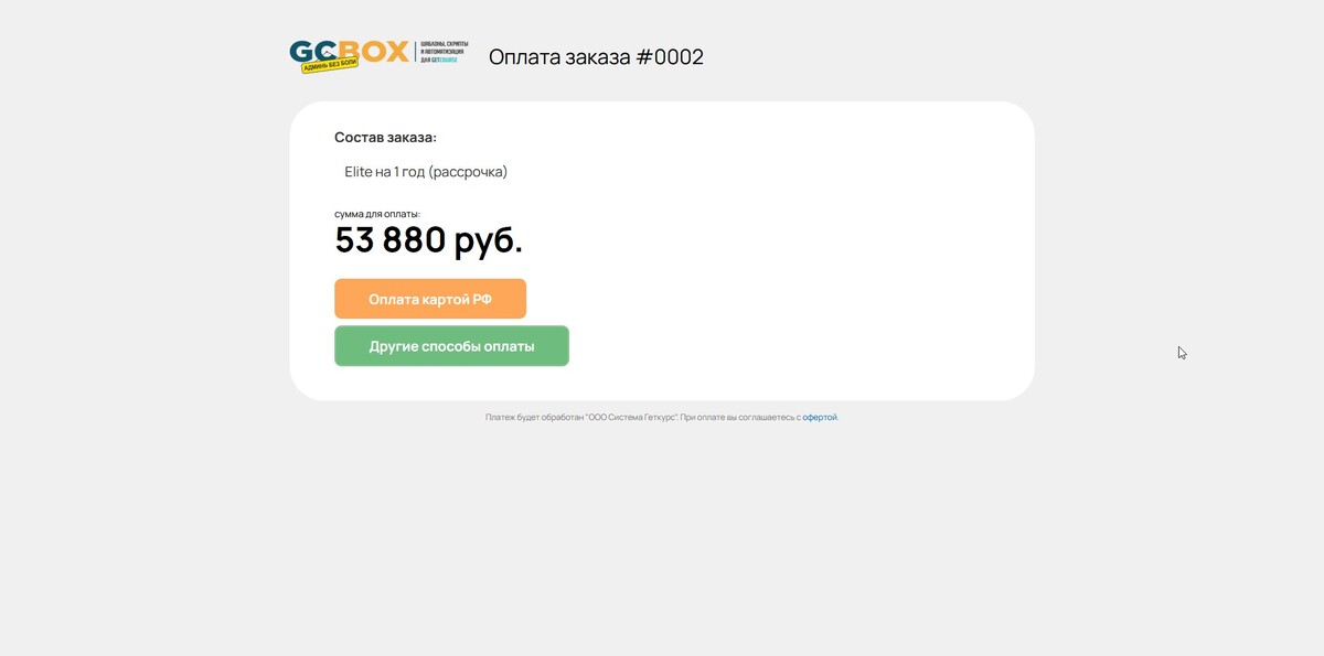 - Оформление страницы оплаты для аккаунтов Getcourse