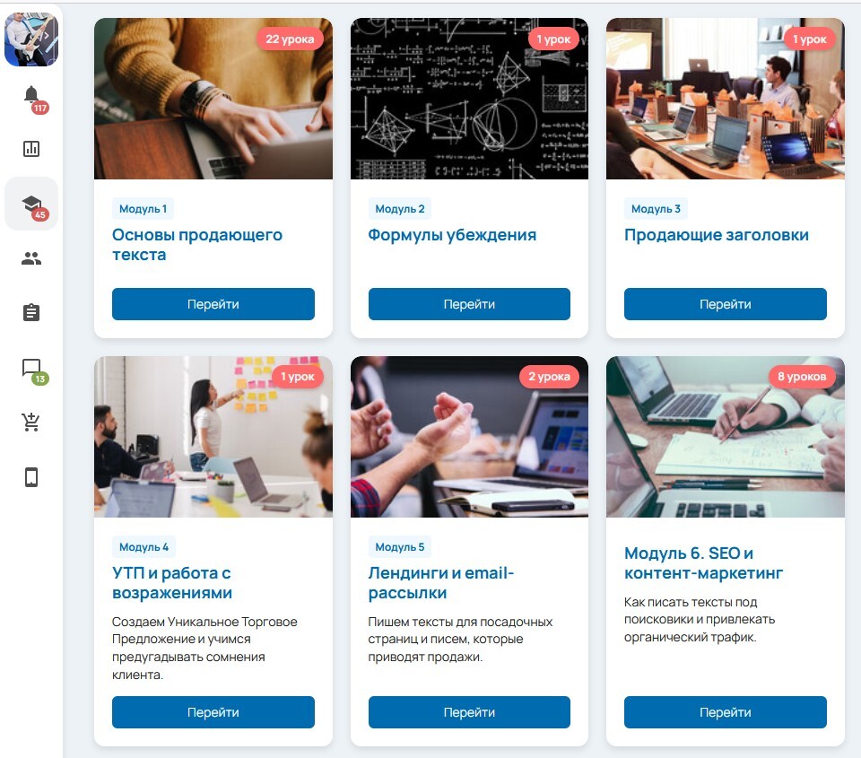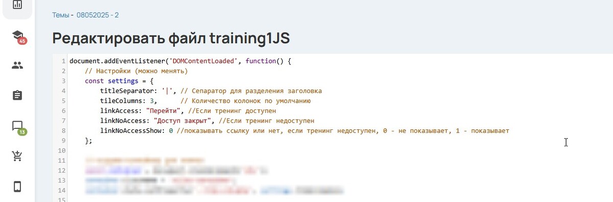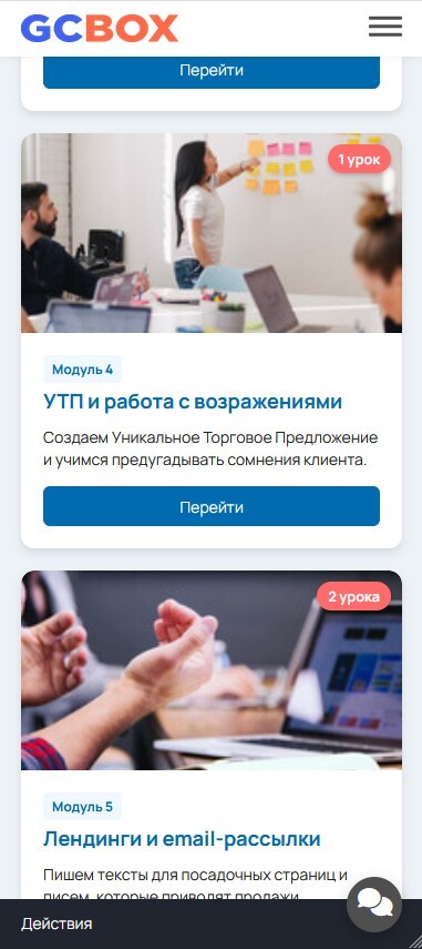 Оформление списка тренингов в виде плиток для аккаунтов Getcourse